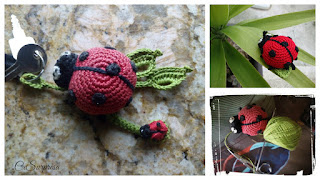 A minha joaninha chaveiro, que foi uma das minhas experiências com os amigurumis, desfez-se no lugar da argola com a fricção das chaves!! Então retirei toda a restante folha verde e resolvi recuperá-la!! afinal as minha chaves também merecem um mimo!!!!